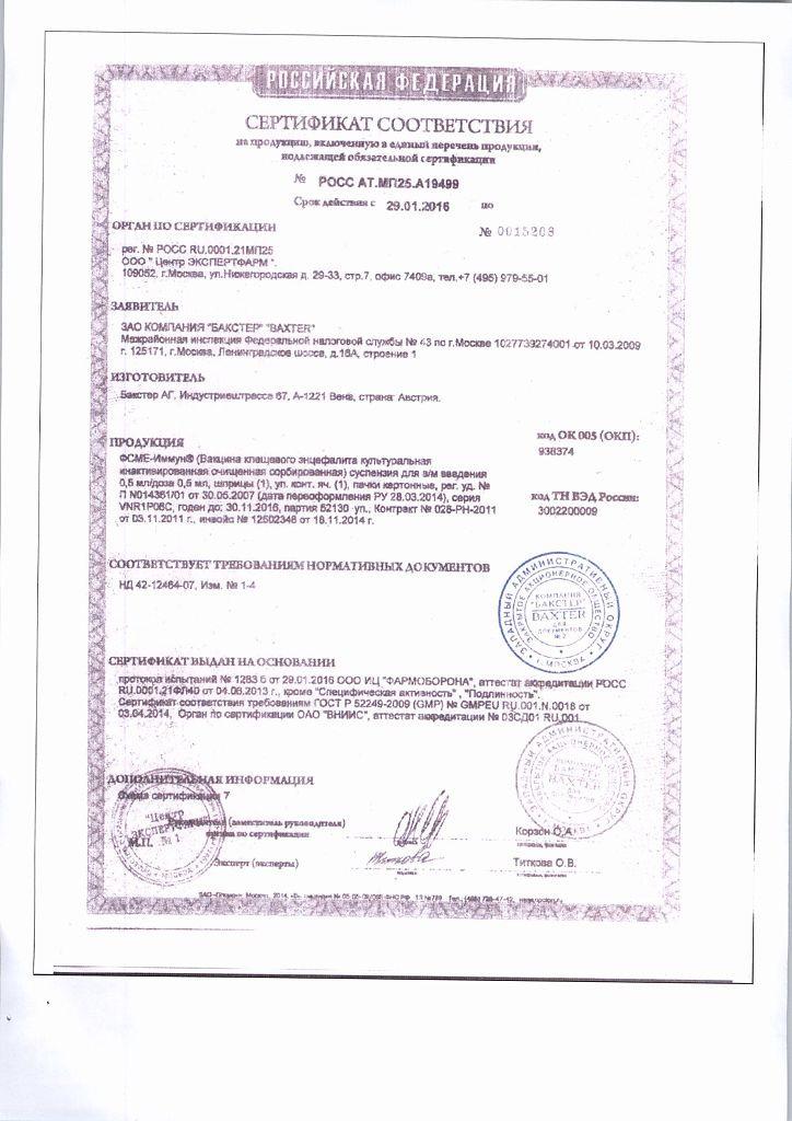 После введения иммуноглобулина против клещевого энцефалита вакцина ФСМЕ-Иммун может быть введена не ранее, чем через 4 недели, в противном случае уровень специфических антител может быть снижен.